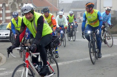 Après un café d’accueil agrémenté des galettes de Jean Pierre L, c’est un peloton de 45 cyclos venus de Chaulnes, Fouilloy, Liomer, Méaulte et Péronne qui s’est élancé sur la petite route qui mène à Conty.