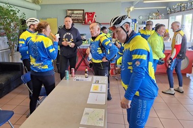 Changement d’heure, gelée blanche, –2°C au départ… rien n’a arrêté les cyclotouristes ce matin ! Après un café d’accueil bienvenu, les sourires se sont vite réchauffés et les vélos se sont élancés sur les petites routes de campagne.